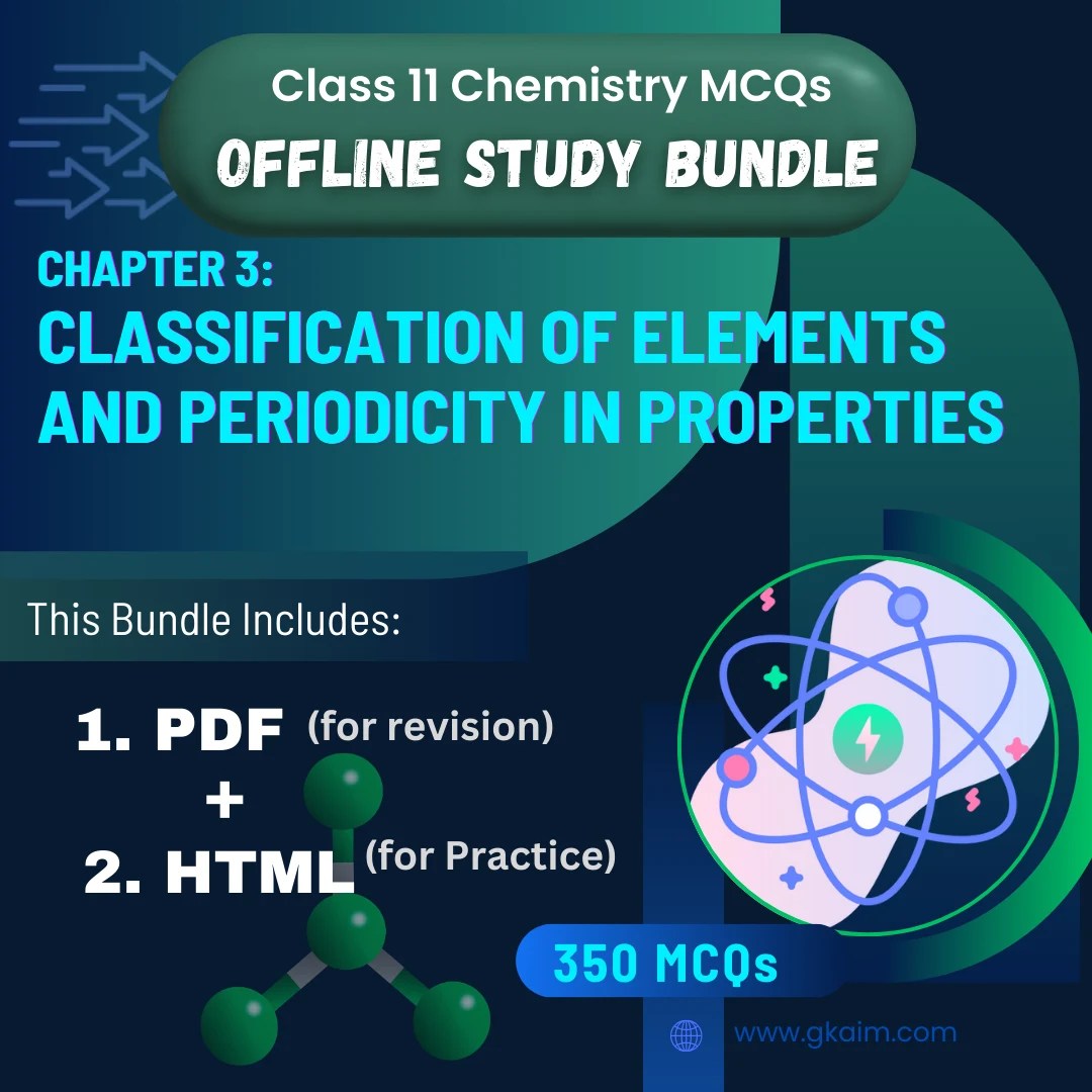 Class 11 Chemistry Chapter 3: Classification of Elements and Periodicity in Properties MCQs | Study Bundle (PDF + Practice File)